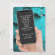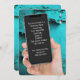 Téléphone portable en main sur arrière - plan aqua texturé pour une fête d'anniversaire. Tout le texte est modifiable.