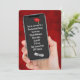 Tenir à la main un téléphone portable avec un texto, une casquette de fin d'études et un diplôme d'arrière - plan en cuir rouge pour une fête de remise des diplômes. Tout le texte est modifiable. Le diplôme et le grand casquette peuvent être supprimés.