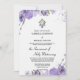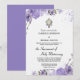 Une élégante invitation de mariage croix florale violette sur fond blanc combine simplicité et touche de grâce divine, ce qui en fait un choix idéal pour les couples qui recherchent une annonce révérencieuse et élégante pour leur jour spécial. L'invitation présente un fond blanc immaculé qui lui donne un aspect propre et serein. Les bordures sont ornées de délicates fleurs violettes, ajoutant une touche de couleur vibrante mais douce qui encadre parfaitement le contenu.
