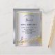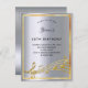 Une carte d'invitation de fête d'anniversaire 50 ans tendance et moderne. Un fond métallisé argenté faux, avec un cadre doré faux et des notes de musique, des lettres de couleur noire. Personnalisez et ajoutez un nom et des informations sur la fête.