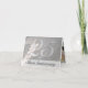 25 ans de mariage est vraiment une occasion merveilleuse. Célébrez ce couple spécial avec style. Un fond en métal brossé argenté orne la couverture de cette invitation avec un grand "2-5" qui ressort par-dessus tout. L'intérieur est entièrement personnalisable par vos soins. Ajoutez des photos du couple, alors et maintenant. Produits assortis disponibles. VEUILLEZ NOTER : Cette carte est imprimée pour avoir l'APPARENCE métallisée.