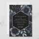 This design features a moody and dramatic aesthetic perfect for a formal winter or evening event. Deep midnight blue anemones are paired with dark botanical clusters and silvery leaves against a black backdrop. The noir-inspired palette creates a sense of luxury and mystery, highlighting detailed floral petals and organic textures.