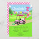 Fêtez le premier anniversaire d'une petite fille spéciale avec cette charmante invitation au golf ! Doté d'une adorable voiturette de golf à pois rose garée à côté d'un putting green, ce design sucré est chargé de détails ludiques, d'un gâteau d'anniversaire festif, et d'un tas de ballons d'hélium lumineux, dont un grand ballon numéro 2. Parfait pour une famille passionnée de golf ou un thème unique de deuxième anniversaire, cette invitation donne le ton pour une journée amusante sur et hors du vert.
