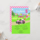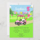 Fêtez le cinquième anniversaire d'une petite fille spéciale avec cette charmante invitation au golf ! Doté d'une adorable voiturette de golf à pois rose garée à côté d'un putting green, ce design sucré est chargé de détails ludiques, d'un gâteau d'anniversaire festif, et d'un tas de ballons d'hélium lumineux, dont un grand ballon numéro 1. Parfait pour une famille passionnée de golf ou un thème unique de cinquième anniversaire, cette invitation donne le ton pour une journée amusante sur et hors du vert.