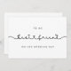 Une carte-cadeau simple et minimaliste pour écrire un message personnel et sincère à votre meilleure amie le jour de son mariage. Entièrement personnalisable avec vos couleurs préférées (texte et arrière-plan). Vous pouvez ajouter un message au dos ou le laisser vide si vous préférez écrire votre message à la main plus tard.