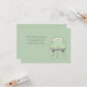 C'est une carte-réponse de mariage mignonne, légère et moderne. Elle présente une petite voiture compacte verte et grise avec des boîtes de conserve attachées à l'arrière et un panneau "Just Married" dans la lunette arrière. Votre texte personnalisé est imprimé en gris clair sur un côté. L'image et le texte sont placés sur un fond vert menthe. Le dos de la carte est également vert menthe, avec votre texte personnalisé. Cette carte correspond aux "Faire-part de mariage vert menthe Modern Forever Love" et à d'autres produits de la collection "Special Day Wedding". *Les illustrations utilisées dans ce design sont la propriété d'Encore Software, Inc., qui en autorise l'utilisation à ses licenciés.