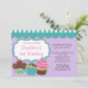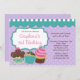 Notre invitation mignonne de fête d'anniversaire de petit gâteau est le début parfait pour vous fête d'anniversaire de petites filles. Nos caractéristiques populaires petits gâteaux mignons de chocolat d'invitation de petit gâteau et de vanille avec le givrage rose réglé sur un arrière - plan pourpre de pois avec une tente bleue et blanche de magasin de rayure sur le dessus. Le dos de l'invitation est un pourpre assorti. Perfectionnez pour une fête d'anniversaire de filles de cuisson de cuisine de petit gâteau. Visitez notre magasin pour une grande sélection des invitations élégantes et modernes de fête d'anniversaire pour une fête d'anniversaire de filles. © Corazon Dulce