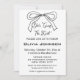 Une simple invitation à la douche nuptiale en noir et blanc Elle lie le noeud Coquette. Modèles qui vous permettent de modifier facilement le texte : police, couleur et taille du motif. Joli doodle arc dessiné à la main et typographie de script.