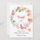 Joli lapin lapin assis dans une couronne avec fleurs, papillon et Baby shower de carotte Invitation pour les filles. Grand invitation pour le printemps, l'été et les vacances de Pâques. Personnalisez avec le nom de votre Maman-To-Be et les détails de votre fête. Quelques graphiques de JW Illustrations © JESSICAWEIBLE.COM.