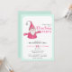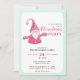 Créez des invitations uniques à Noël vert menthe et rose décorées d'un joli gnome. Le texte modèle facilite la personnalisation et la personnaliser des invitations.