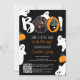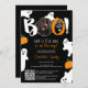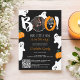Célébrez l'arrivée prochaine de votre petite fille avec cette adorable invitation de baby shower sur le thème de l'Halloween ! Le design comprend un arrière - plan noir ludique orné de jolies illustrations fantômes, un citrouille orange et un gros titre "BOO !" en caractère fantaisiste. En haut, il y a un endroit pour une photo personnalisable, ajoutant une touche personnelle à l'invitation. Sur l'invitation, on peut lire : "Notre Petit Boo est en route !" avec un code QR pratique en bas, qui permet aux clients d'obtenir plus de détails et RSVP. Parfait pour un baby shower à thème Halloween, cette invitation combine des éléments festifs avec des illustrations graphiques charmantes, assurant un événement délicieux et mémorable pour tous les participants.