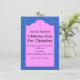 Cette invitation à la fête a une mignonne sirène avec une queue rose vif tenant la tête de son ami à cheval argent et bleu avec un poisson nageant au-dessus et deux étoiles de mer orange dans le sable en dessous sur un arrière - plan bleu océan. Customisez vos informations dans le cadre rose avec les modèles.