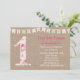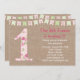 Première invitation d'anniversaire de style chic minable avec la bannière mignonne d'étamine sur un arrière - plan de toile de jute. Cette invitation a un grand numéro 1 avec un beau motif chic minable.