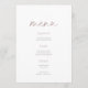 Perfect for bridal showers, intimate celebrations, and modern wedding events, this timeless menu card adds a subtle, elevated touch to your decor. Easily personalize the menu items and text to match your event style.