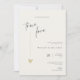 This minimal and elegant invitation is perfect for a modern wedding. Design features an handwritten font and modern minimalist design with a golden heart. You can change the names, wedding location and date, and other details, click «Personalize».