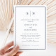 Ces élégantes et modernes invitations à des dîners de répétitions mariages présentent un design minimaliste simple bleu marine et blanc, avec un cadre classique à la frontière. Ajoutez vos initiales ou votre monogramme pour les rendre complètement vôtres.