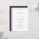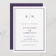 Ces invitations de mariage élégantes et modernes présentent un design de texte minimaliste blanc simple, avec du texte violet foncé et un cadre classique à la frontière. Ajoutez vos initiales ou votre monogramme pour les rendre complètement vôtres.