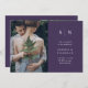 Ces invitations de mariage élégantes et modernes présentent un design de texte simple violet et blanc qui respire le style minimaliste, avec deux de vos photos personnelles préférées. D'autres détails mariages ou le site Web peuvent aller à l'arrière. Ajoutez vos initiales ou votre monogramme pour les rendre complètement vôtres.