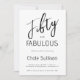 Fifty and Fabulous script minimal black modern 50th birthday invitation that you can personalize and send out for your fiftieth birthday party celebration. The words "Fifty and Fabulous" are set using popular script font typography. The text colors can be changed using the edit menu.