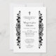 Exquisite Minimalist Floral Back & White Floral Garlands Funeral Invitation Cards with Back Photo.