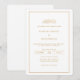 Simple yet refined, this white ivory Islamic Muslim wedding card embraces minimal modern design with a timeless elegant aesthetic. A delicate rectangle gold border frames the invitation, adding subtle warmth to the clean background. Traditional Arabic calligraphy sits atop, while a formal script font delivers every detail and the couple's names with a polished, luxurious style.