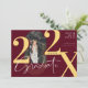 Modern geometric photo arch graduation announcement. The design features an arch line pattern with a photo arch frame. Customize with your grad's photo placed inside a modern arch photo frame. Large text 202X to display the graduation year displayed boldly with "Graduate" Displayed in elegant script. Personalize with the grad's name and school. The reverse side features a modern geometric arch pattern that beautifully complements the front grad card design. You can change the background color as well as the arch shapes to any color to complement your photo. Designed by Moodthology Papery.