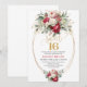 Invitation Minimal Red Burgundy Floral Sweet Sixteen Invite