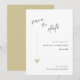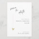 Cette invitation minimale et élégante noire et blanche pour annoncer la date est parfaite pour un mariage moderne. Le design présente une police manuscrite et un design minimaliste moderne avec un cœur doré. Vous pouvez changer les noms, le lieu et la date du mariage, cliquez sur «Personnaliser».