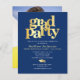 Soyez fiers, réjouissez-vous et mettez en valeur cette étape importante de votre diplômé préféré ! Envoyez cette invitation photo personnalisée et à petit budget, minimaliste, simple et moderne pour un événement inoubliable. Une typographie grasse et graphique en faux or et une icône de casquette, ainsi qu'une typographie blanche supplémentaire, se superposent sur un fond bleu marine. La photo de votre choix est au verso. Personnalisez le texte personnalisé avec la photo de votre diplômé, son nom, son école, son année de promotion et les informations sur le lieu de la fête. Garantie d'ajouter une touche de style amusant à leur occasion spéciale !