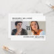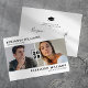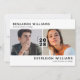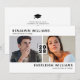 Cartes d'invitation modernes noires et blanches pour une fête de remise de diplômes conjointe avec un fond blanc simple qui peut être changé en n'importe quelle couleur, deux photos des diplômés, et un modèle de double célébration moderne facile à personnaliser.