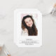 Personalize this modern photo graduation party invite front and back with your own text and photo. Features a minimalist design of a main photo on the front with stylized dark gray text that allows the photo to pop. Ample space on the back has been formatted to further personalize with your own details. Your choice of styles. Photo credit: adapted images from Pexels.com by Maryia Plashchynskay