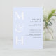 Invitation Minimalist Pastel Blue White Monogram Wedding