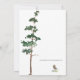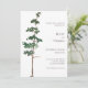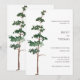 This minimalist wedding invitation features a watercolor spruce tree against a natural background.