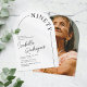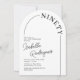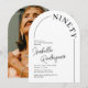 Découvrez l'élégance de la simplicité avec nos invitations de fête d'anniversaire 90 ans minimalistes. Avec un fond blanc net, une forme d'arche chic, une police sérif intemporelle et un modèle de texte personnalisable, ces invitations sont un clin d'œil élégant aux 90 ans du célébrant. Au verso, vous avez la possibilité d'inclure (ou d'exclure) une photo du héros de la fête pour un côté personnel. Célébrez ce cap avec style, sophistication et une touche de charme personnel.