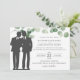 Personnalisez cette élégante invitation de mariage avec votre propre libellé facilement et rapidement, appuyez simplement sur le bouton customiser pour réorganiser et formater le style et le placement du texte. Doté d'une silhouette m & m et d'un feuillage d'eucalyptus à l'aquarelle dessiné à la main. Objets correspondants disponibles en magasin ! c) Le Happy Cat Studio.