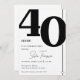 Moderne et élégant noir et blanc minimaliste 40e anniversaire invitation de fête comprend élégant numéro 40. Grande invitation d'anniversaire pour adulte surprise pour les hommes et les femmes.