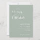 Faire-part de mariage moderne avec design de typographie minimaliste dans la couleur vert sauge. Personnalisez facilement avec toutes vos informations pour des invitations personnalisées de mariage,