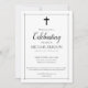 This minimalist invitation with Latin Cross features a clean border and refined typography, offering a peaceful and modern way to share service details. Designed for those who seek dignity in simplicity, this template is easy to customize for a funeral, memorial, or celebration of life.