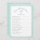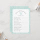 Titre du jeu et questions textuelles pour baby shower ou douche nuptiale. Comprend un arc peint à la main avec en vichy cadre vert menthe et dossier.