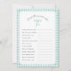 Titre du jeu et questions textuelles pour baby shower ou douche nuptiale. Dispose d'un arc peint à la main avec en vichy cadre et dossier Mint Green plaid.