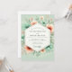 Delicate blooms in soft mint and coral hues create a dreamy, ethereal atmosphere. This design captures a whimsical and romantic mood with its painterly floral arrangements and subtle greenery. Perfect for a lighthearted and enchanting occasion.