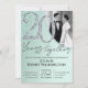 This modern anniversary card showcases a striking diamond-style number twenty combined with a contemporary photo layout on a soft mint green background. The balanced photo placement creates a meaningful, personal focus, while subtle patterns and refined typography add a clean, modern finish. The mint green and silver color palette feels fresh and elegant, making this design a beautiful choice for celebrating twenty years together with a stylish and personalized look.