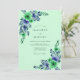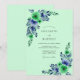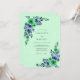 A refreshing mint green background provides a soft canvas for rich watercolor artistry. Vivid clusters of navy blue and emerald green flora are arranged beautifully, showcasing delicate petals and lush foliage. The cool tones of indigo and forest green create a serene and sophisticated aesthetic. This botanical design evokes a breezy spring atmosphere with its detailed leaf sprigs and elegant blooms.