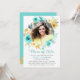 Invitation Minty Cyan Gold Floral Photo Graduation Party