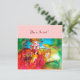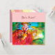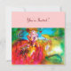 Personnage coloré, fantaisiste et vibrant de masquerade vénitienne. Une belle femme blonde sophistiquée est assise avec une rose rouge et un masque à plumes à la main, avec des tissus dorés et fuchsia scintillants d'un costume de bal masqué baroque avec des plumes et un chien. Peinture à l'aquarelle avec des couleurs vives en jaune, bleu, rose, vert, paillettes dorées et feuille d'argent, inspirée des personnages de la Comédie de l'Art (Commedia dell'Arte), du Carnaval de Venise et des masques à plumes vénitiens. Ce design cool et artistique est parfait pour les mariages, les cérémonies de noces, les douches de mariée, les anniversaires de 16 ans, les fêtes de quinceañera, les soirées costumées d'Halloween, les bals costumés, les