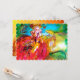 Personnage coloré, fantaisiste et vibrant de masquerade vénitienne. Une belle femme blonde sophistiquée est assise avec une rose rouge et un masque à plumes à la main, avec des tissus dorés et fuchsia scintillants d'un costume de bal masqué baroque avec des plumes et un chien. Peinture à l'aquarelle avec des couleurs vives en jaune, bleu, rose, vert, paillettes dorées et feuille d'argent, inspirée des personnages de la Comédie de l'Art (Commedia dell'Arte), du Carnaval de Venise et des masques à plumes vénitiens. Ce design cool et artistique est parfait pour les mariages, les cérémonies de nuptialité, les douches de mariée, les anniversaires de 16 ans, les fêtes de quinceañera, les soirées costumées d'Halloween, les bals costumés