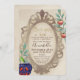 Cette enchanteresse et élégante invitation à la fête a pour thème le conte de fées Blanche Neige. Une image d'une pomme venimeuse est imprimée en bas à gauche, avec une branche de pommes rouges brillantes imprimée en haut à droite. Un grand miroir doré est placé au centre avec les informations de la fête. L'expression "Il était une fois" est représentée en haut dans une fausse parties scintillant d'or. L'arrière - plan présente un style rustique, un design de papier parchemin pour ressembler à un livre de conte de fées vintage.