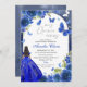 Mis Quince Anos Blue Silver Rose Quinceanera Invitation