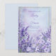 Capture the ethereal essence of a sun-drenched meadow with this dreamy botanical layout. The design features a lush foreground of vibrant purple lavender stalks on the left, transitioning into soft periwinkle and lilac blossoms with delicate yellow centers on the right. A sophisticated thin gold double-line rectangular frame provides a structured anchor for your wording, set against a stunning misty blue and violet bokeh background. The soft-focus textures and tranquil pastel palette create a high-end, fine-art garden feel that is both timeless and deeply romantic. This botanical scene is a premier choice for a romantic spring garden ceremony or a whimsical outdoor summer wedding. The soothing periwinkle and purple color story makes it a flawless fit for a refined bridal shower, a sophisticated engagement party, or an intimate vineyard reception. It pairs beautifully with motifs like modern organic, French provincial, or fine-art botanical, and coordinates perfectly with gold metallic accents, white linen textures, and dusty lavender decor.