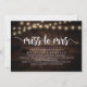 Calligraphie moderne Carte d'invitation nuptiale de douche (Mlle à Mme), en bois foncé rustique lampes à cordes design thème. Invitation les invités avec cette carte d'invitation parfaite. Ajoutez les détails de votre douche nuptiale dans le libellé correspondant.